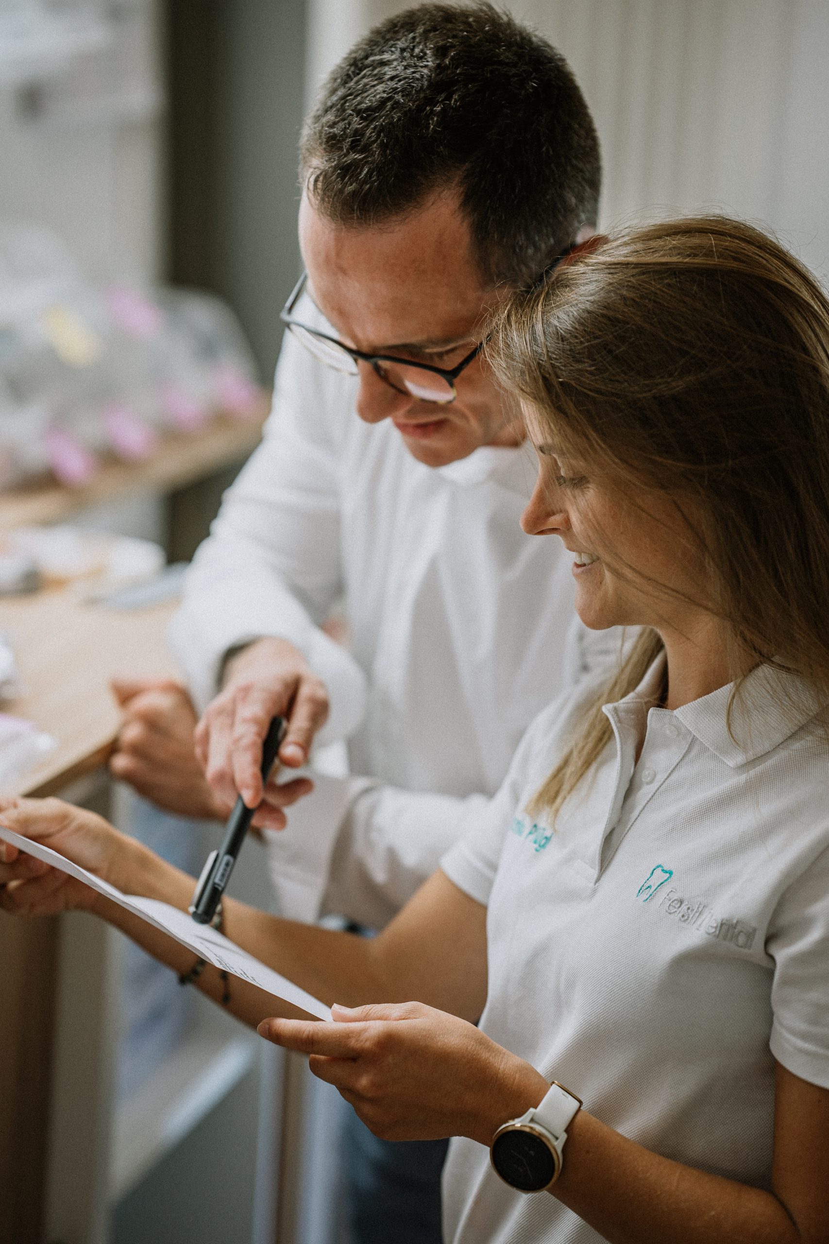 Ob im Austausch mit Zahnärzt:innen, in der Abstimmung mit Praxisteams oder intern im Labor – wir setzen auf offene Kommunikation, gegenseitigen Respekt und das gute Gefühl, sich aufeinander verlassen zu können.